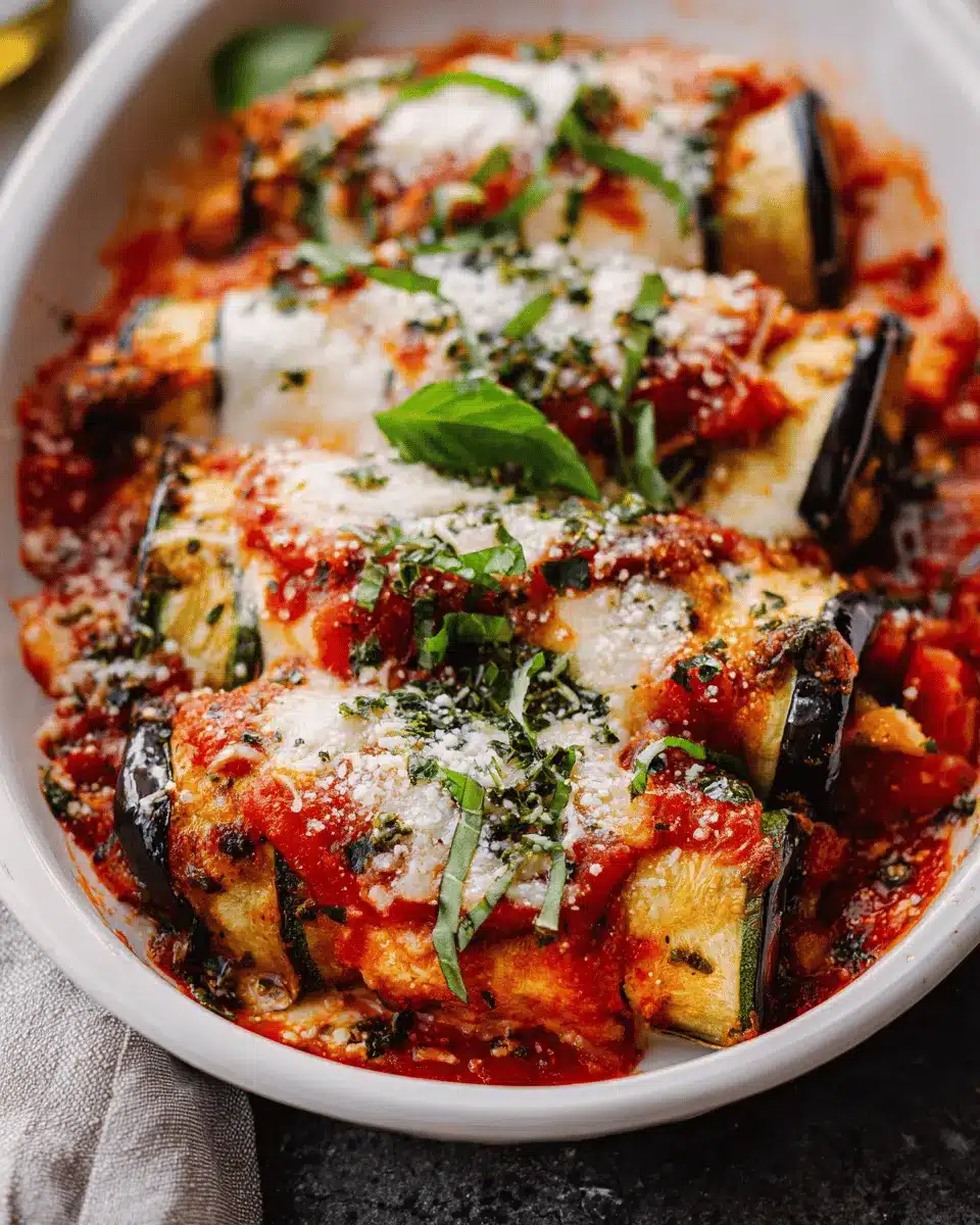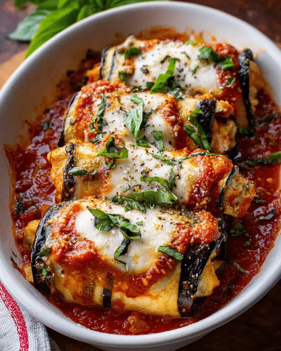 Imagine digging into tender, rolled slices of eggplant filled with a creamy ricotta and herb filling, all blanketed in a rich marinara sauce and topped with melty mozzarella. It's comfort food at its finest! Did you know that eggplant is not only low in calories but also rich in antioxidants? It’s an excellent way to enjoy a hearty meal without the guilt.