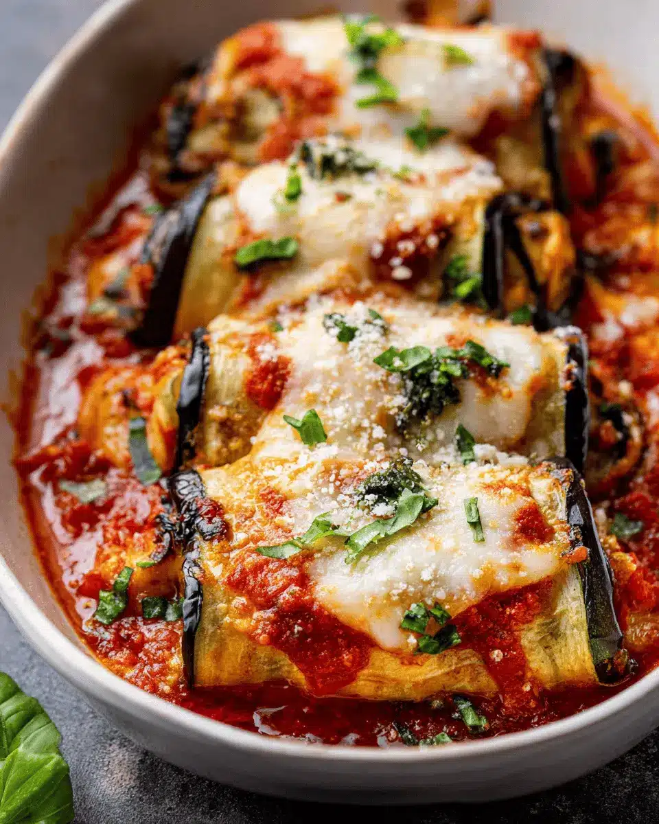 In conclusion, the best eggplant rollatini is a delicious twist on a classic Italian dish that’s both satisfying and healthy. With a creamy ricotta filling and layers of rich marinara, this dish is perfect for impressing guests or enjoying a cozy night in. Give it a try and savor every bite!