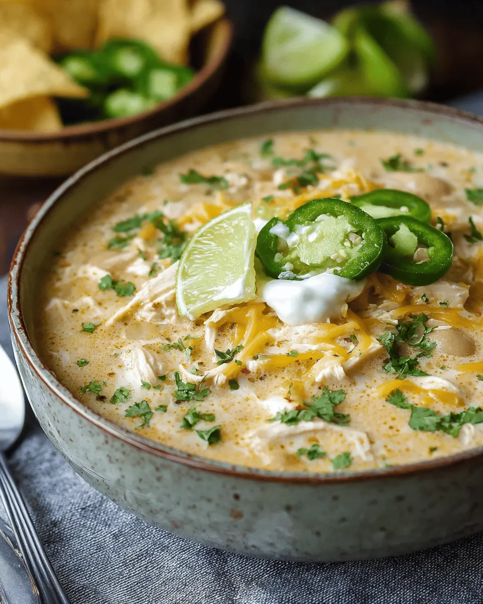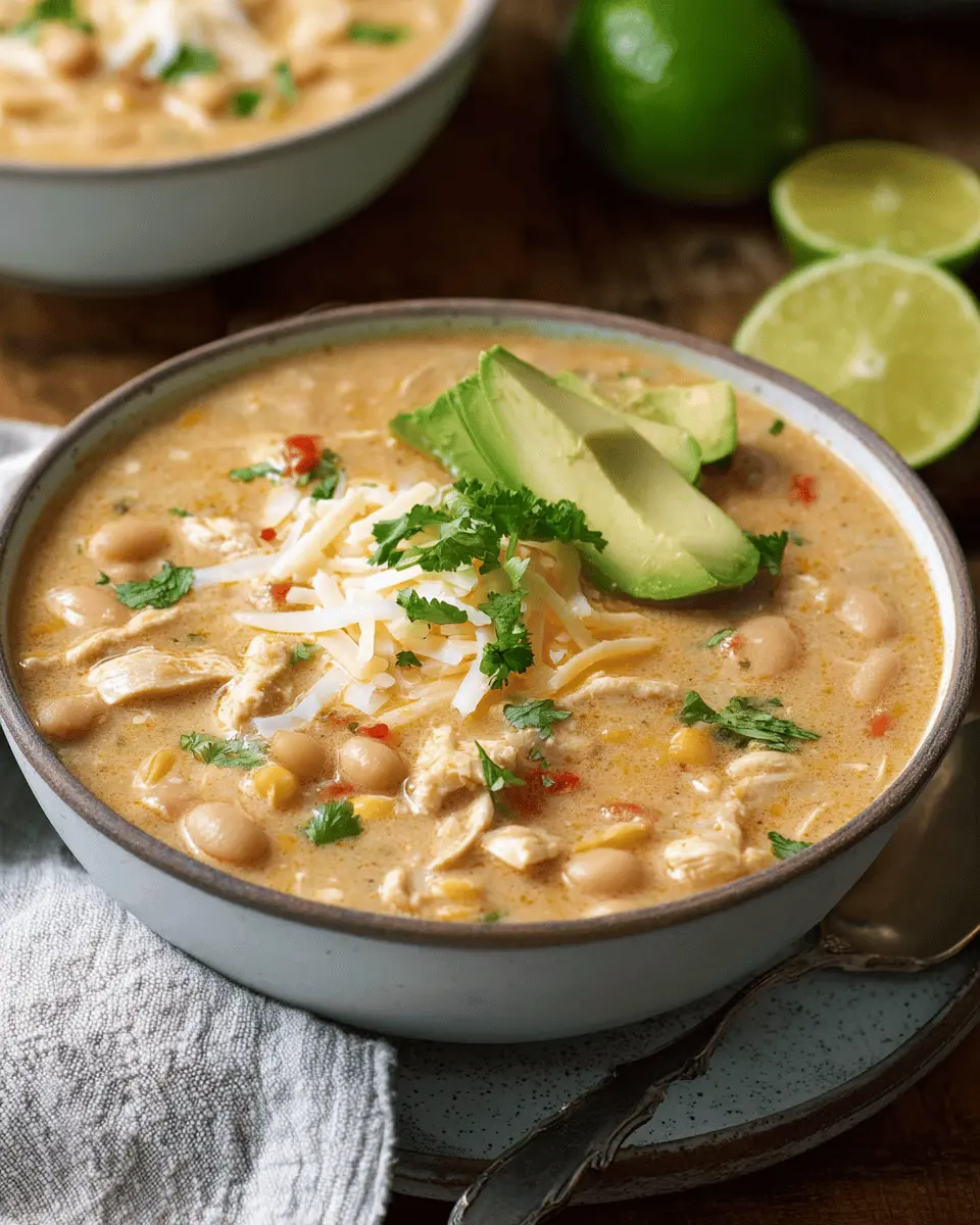 If you’re craving something with a little extra kick, look no further than this Southwest-inspired twist on the best white chicken chili. Incorporate diced jalapeños and perhaps some fresh cilantro for added flavor. You might even consider finishing it off with a sprinkle of queso fresco or a dollop of sour cream for a creamy finish.