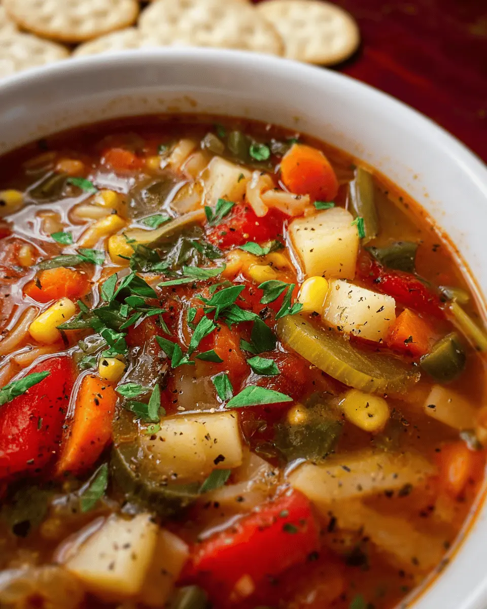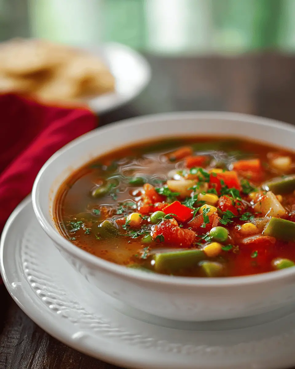 Vegetable Soup Made Cozy with Turkey Bacon and Chicken Ham