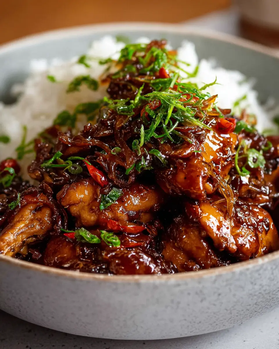 To elevate your Vietnamese Caramel Ginger Chicken, serve it alongside fluffy jasmine rice or white rice. The delicate aroma of jasmine rice perfectly complements the sweet, sticky glaze of the chicken, creating a delightful balance on your palate. For a unique twist, consider a side of coconut rice infused with a hint of sweetness, perfect for soaking up any extra sauce.
